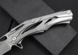 品牌:变型金刚全长:228mm刃长:96mm柄长:130mm刃宽:28mm刃厚:3.8mm刃材:8铬18钼(深冷处理)重量:304g(含包装物)硬度:58HRC表面:拉丝+石洗柄材:手柄全钢手柄电脑椤缕空、底骨全钢电镀处理。刀夹:全钢锁型:分体插入锁杆式线锁。螺丝:所有螺丝420不锈钢、硬度HRC45、全CNC精雕加工。结构:分体插入锁杆式线锁结构、锁刀接触镶嵌合金粒、陶瓷定位珠、内置平面滚针轴承垫片。其他:礼品盒