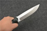 鹏版新太平洋海豹战斗刀传承了“太平洋战斗刀”设计风格和制作工艺品质要求,刀刃同样采用了在制作威鹏箭豹有优良性能表现的AUS-10A钢材,采用特殊热处理,达到HRC59-60硬度,非常坚韧,刀锋在硬度和韧性方面都有稳定优秀的保持性。刀背采用CNC 电脑锣圆边工艺制作,尚属国内先进制作工艺。同样手柄选用彩色G10(国内首发)结合人体工程学,CNC立体成型,配防脱手绳。整款刀采用先进机器设备及工业化制作技术,由国内顶级手工打磨开刃师傅全程统筹制作,整体刀身线条美观大方,同时兼顾了野外生存及日常工作使用。