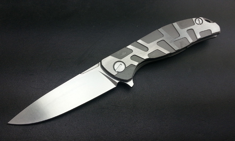 俄罗斯著名刀匠设计,熊头高端钛柄系列, 刀柄采用整块钛板用CNC镂空雕刻,轴承转轴,鱼鳍快拨,食指轻拨顺畅开刀,国内刀匠精工制作规格全长 22.3CM刃长 9.5CM 刃厚 0.5CM刃材料 D2高速钢柄材料 钛柄重量 155g包装 真皮套,礼品盒