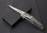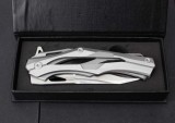 全 长: 22.8cm 刃 长: 9.6cm 刃 宽: 3.0cm(最宽处)闭 合: 13cm(柄长)刃 材: 5CR15MOV硬 度: 57表 面: 拉丝刃 厚: 0.36cm柄 材: 拉丝钢柄净 重: 280克毛 重:300克包 装:黑礼品盒锁 闭: 线锁