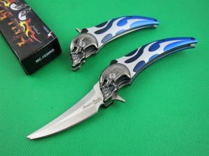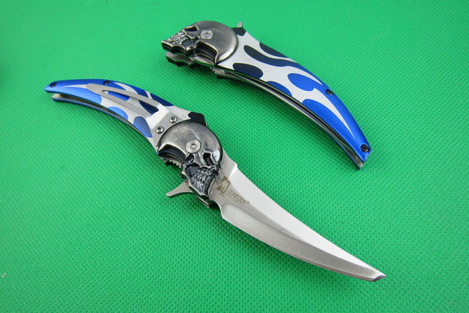 类型: 折刀品牌:鬼头全长:20.1CM刃长:7.1CM刃厚: 0.3CM刃宽:2.1CM (最宽处) 柄长: 12.2CM(闭合)刃材:5CR15MOV硬度: 57表面:沙光柄材: 钢片+航空铝重量:130克锁定: 侧锁其他:带背夹