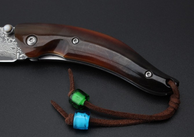 海豚HK211-大马士革折刀 全 长:15.5cm刃 长:6cm柄 长:9.5cm刃 宽:2.3cm刃 厚:2.1mm刃 材:大马士革钢重 量:80g(含绒袋)硬 度:58HRC表 面:大马士革原纹柄 材:牛角锁 型:侧锁其 他:配布袋