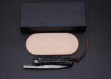 名 称: 啄木鸟大马士革折刀全 长: 17cm刃 长: 7cm柄 长: 10cm硬 度: 59HRC刃 厚: 0.24cm重 量: 100克左右刃 材: 大马士革钢刃宽:21mm 柄材:黑檀木 锁型:无锁 净重:62g 总重:126g 包装:黑盒+皮套
