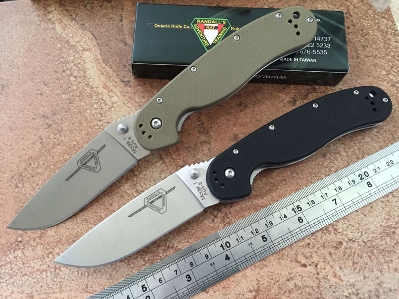 ontario安大略Model 1, 设计来自 Randall 兰德尔探险系列,其独特的舒适食指指槽位设计,确保切割物品时候非常容易掌控方向,4MM aus-8强力锋刃。 Model 1 是一款可靠,坚固的户外战术折刀