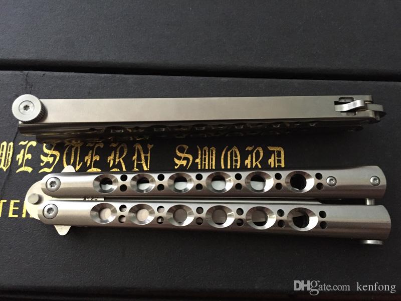 BM43,最经典Benchmade(蝴蝶)钛柄甩刀,由The one (唯一)精工打造,刀柄选用一体T-4钛经数控车床(CNC)加工而成,整体重量115克,1:1复刻原版,蝴蝶标,刀刃选用优质440C刀刃,数控精磨,搭配高品质丝扣等,精工细活,为广大甩刀迷打造经典蝴蝶甩刀规格全长 23.3CM(打开)刃长 9.5CM刃厚 0.3CM刃材料 440C不锈钢表面 丝质抛光硬度 58重量 115克刀鞘 尼龙刀鞘