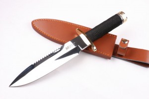 类 型: 中型直刀品 牌: MT全 长: 33.2cm刃 长: 17.5cm刃 厚: 5.6mm刃 材: 440硬 度: 58HRC重 量: 750g(含包装)表 面: 镜光柄 材: 无缝钢管+细绳+镀24K金护手刀 鞘: 牛皮其 它: 锋利+求生用品