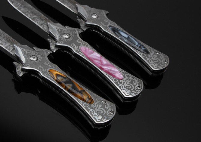 重 量:217g(含包装)硬 度:57HRC表 面:雕花柄 材:钢柄+亚克力