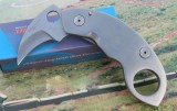 看过玩爪子刀视频的朋友一定有感觉,让爪子像风车一样旋转的美妙吧,其它这个还是很容易做到的,因为刀身的设计长度,让你在旋转时刀锋不会有碰到手掌的可能性,而且穿指孔磨得特别光滑, 所以玩的时候尽管放胆旋吧,不会伤到自己的。只要你把爪子转顺手了,其它花式就好办多了!该刀反握时,是最适合以拳出击的工具.刀身的短弧使得他可以很快打开,仅用小拇指就可以做到,可参照附图.
