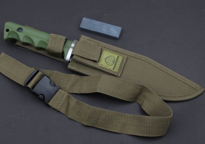 品牌:米克类 型: 直刀全长:34cm刃长:21.2cm柄长:12.6cm刃厚:0.60cm刃宽:4.5cm刃材:5Cr13柄材:橡塑硬度:57HRC净重:500克毛重:604克表面处:沙光其他:配磨刀石+绑脚带