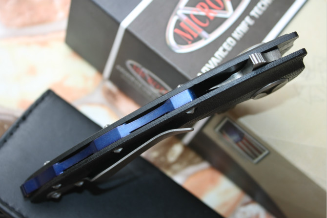 柄 材:手柄G10、锁杆TC4钛合金、底骨TC4钛合金蓝色阳极电镀处理。