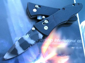 Benchmade刀具公司及他们的设计师努力使自己的产品成为当今顶尖的刀具,让每一个人都渴望拥有它。设计师艾伦凭着自己出色的才能与灵感设计出了优秀的910,为此他付出了许多心血!这是一把拥有几何力面的TANTO刃战术刀,握在手中,你会感觉它就好象你身体的一部分。绸缎般的刀表面泛出Stryker特有的光,这是蝴蝶公司生产过程中的改进,BK涂层使它有这样的效果。910是一款设计优秀的战术刀,刀柄构思出众,圆形的尾柄无论在正握和反抓时都很合手,放在衣袋中也很合适。握刀时从手腕到刀柄再至刀刃,施力均匀,切割物与刀刃接触时,拇指不需再象以往那样弯曲来提高切断力。你仔细观察才会发现一些独到之处。刀锁内藏,右侧被刀柄保护。你按住开刀钮,刀身平顺打开,收刀时也相当灵巧,决对不会割伤你的手指。我们发现即使戴编织射击手套时也不妨碍,反而抓刀柄握力更紧。