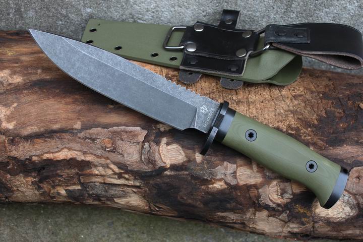 香港MG 丛林法则 户外生存刀,外观漂亮,实用度高,但是制作真的很艰辛,这款刀不同于普通夹片柄直刀(两片手柄夹在刀片上的那种简单结构),需要刀片;护手;手柄;尾椎同时高精度结合,这个就很考验加工精度了,我们的每一把丛林法则,都是标号制作的,所有相关配件都是从开始制作到最后成品,都是配套的(相应内部都有标号,可以拆开查看),为了精度达标都是拆了装,装了磨,磨了再拆,每把都是制作者的汗水。(这个就是为什么市场上这种结构的户外刀那么少的原因,因为难做啊 呵呵)