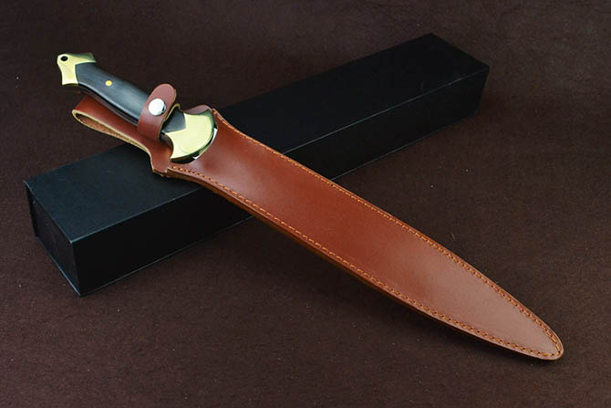 全 长:48cm刃 长:31cm柄 长:16cm刃 厚:7.5mm刃 宽: 3.6cm刃 材: 5Cr15Wov表 面:镜光柄 材: 双铜头+黑檀硬 度: 57HRC净 重:980g(含皮套)重 量:1380克(含包装物)包 装:皮套、高档硬纸盒。