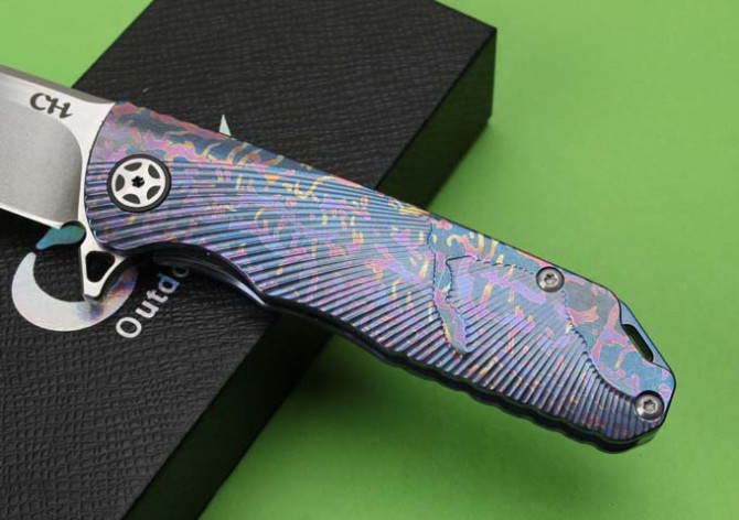 最新的拔手钉快开方式,开合更加顺畅,全钛刀柄,彩色钛合金;刀片采用D2钢材料,全手工打磨,线条流畅;最高要求的精准的外六角止位钉,更显工艺高超;内嵚式合金锁位片,使刀柄表面光滑,给人最美观感!这就是全新的