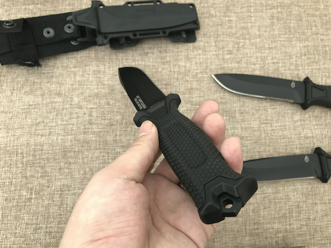 类 型: 直刀 型 号: 1500 全 长: 249毫米 刀 长: 123毫米刃 材: 12C 27 刃 宽:30 毫米硬 度: 58-60HRC 表 面: 黑色特弗龙涂层 刃 厚: 4.2毫米柄 长: 120毫米柄 材: FRN 玻璃纤维套 重 量: 300g