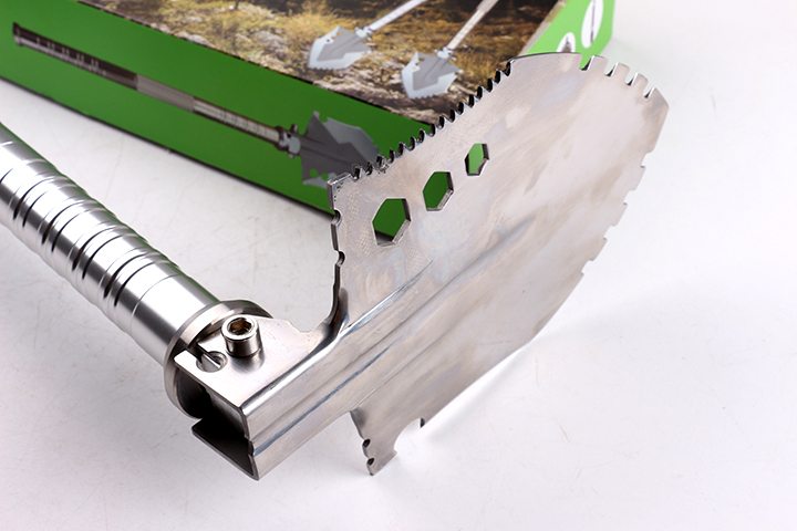 功能:有铲,锄 ,锯,刀,开瓶器,打火棒,指南针等功能,在生产工艺上采用上好淬火高碳钢,增加强度,抗磨损,抗腐蚀,耐高温等优势.有把铲在手,登山,外出永不怕。
