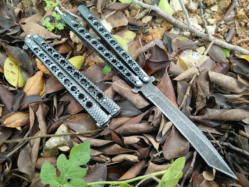 The One 黑鸟(29CM)一体柄蝴蝶甩刀 (碳纤迷彩+黑石洗)