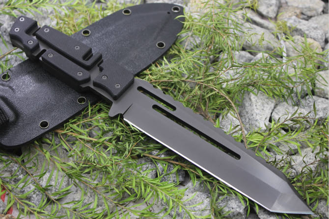 全 长:290mm刃 长:165mm柄 长:120mm刃 宽:40mm刃 厚:5mm刃 材:7Cr17Mov重 量:700g(含包装)硬 度:59HRC表 面:镀钛柄 材:钢一体柄+G10条锁 型:定锁其 他:产品锋利无比,配K鞘