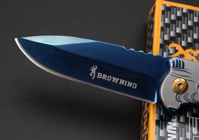 勃朗宁-浮雕鸳鸯快开折刀 (蓝钛版)