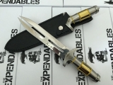 简介:敢死队系列中的全功能刀,刀刃为镜面双锋设计,能满足在格斗中穿刺,削,弯钢线,撞击等多种功能,全精钢手抦,中间带缓冲隔垫,刀刃及手抦全纳米镀层处理,确保在恶劣环镜下能发挥该刀的最大功能,该刀刀刃锋利,广大敢死队粉丝又一珍藏珍品