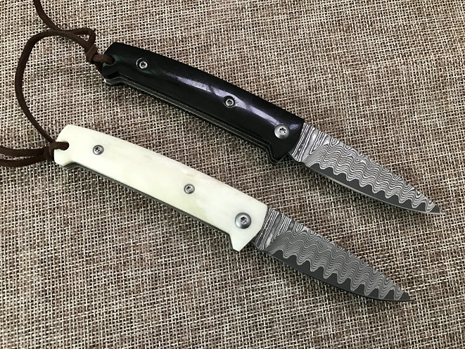 绅士风范口袋随身黑白配小折,无锁结构,大马士革刀片,纹理优雅,钢层分明可触,柄材牛角,款式大气复古。全长:145cm刃长:70mm 刃宽:17mm 刃厚:2.5mm 刃材:大马士革重量:黑46g硬度:58HRC柄材:黑柄牛角或牛骨,配送:礼品盒+牛 绳