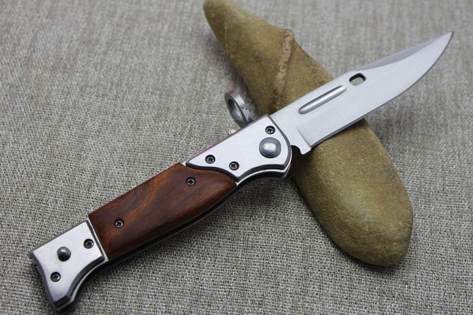 带不锈钢背夹,附送高档刀套。彩盒包装