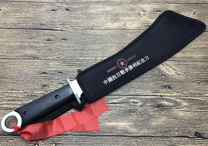 类型: 砍刀 全长:55cm刃长:35.5cm表面处理:镀灰钛 柄长:16.5cm刃厚:4.8mm刃宽: 8cm(最宽处)刃材: 7Cr17柄材: 彩木硬度: 58HRC重量:1000克(含尼龙套)包装:拉链尼龙套、挂小红布