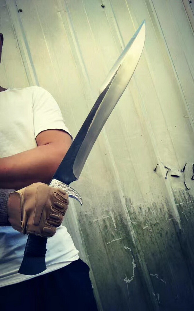 材质:高猛钢锻打 防滑皮带缠绕 手工雕花护手