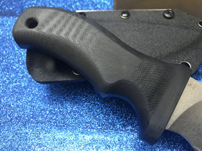 刃材:A2(真空油率)硬度韧性俱佳 全长:224MM 刃长:116MM 柄长:108MM 刃厚:4.5MM 硬度:60 手柄全包柄G10 净重:241克 镜面和石洗。 刀套:2.0美产进口kydex(附赠送金钢石磨刀石一条) 礼品合包装 (手柄内灌注强力胶水填充,镶堪钢钉一颗)