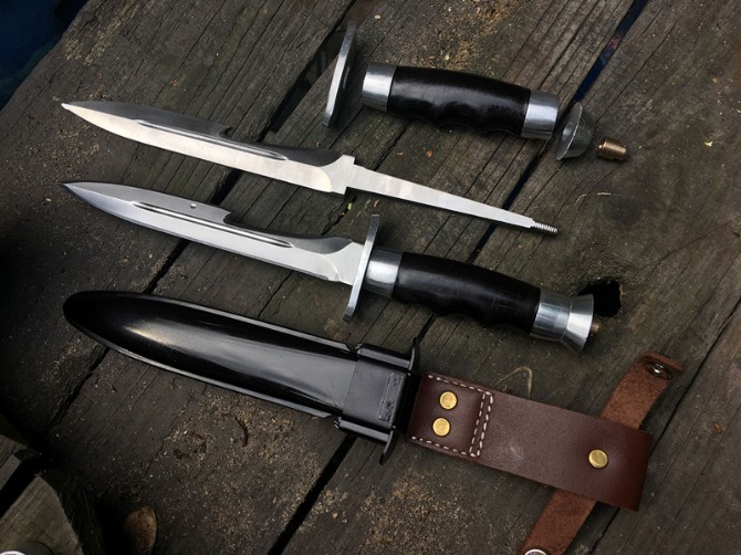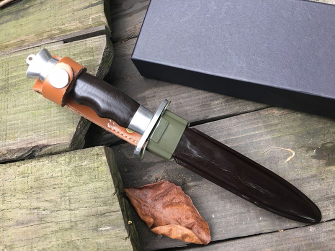 65式伞兵刀是空降兵部队配发使用的装备。该刀呈匕首型,重量轻,造型简洁,双面刃,其中一面带钩刀。它配于备份伞上,也可佩带在伞兵身上;既可割伞绳,又可兼做防身武器。