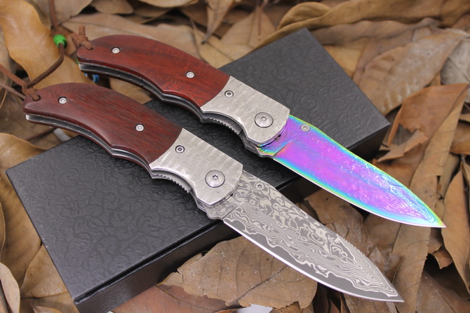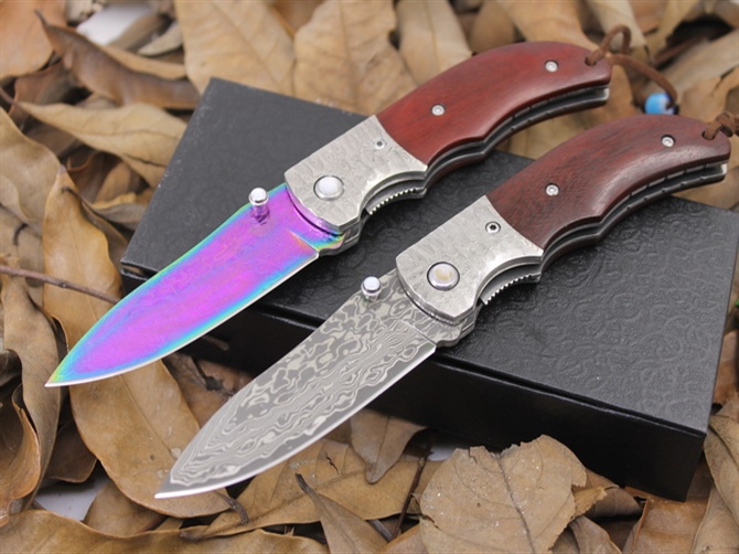 老刀匠大马士革 -大马钢头折刀 (原色刃和彩色刃)