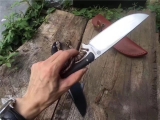 全长:23.2cm刃长:10cm柄长:12cm刃厚:5.8mm刃宽: 3.5cm刃材: D2表面:黑钛+拉丝柄材: 一体+绑绳硬度: 60HRC毛重:399克(含包装)包装:高档纸盒、皮套。