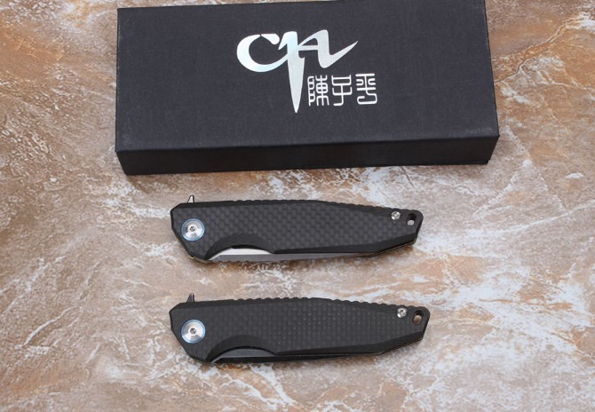 品 牌:CH类 型:折刀总 长:18.8cm柄 长:11.6cm刃 长:80cm刃 厚:0.38mm刃 材:abs-8 (真空热外理)刃 面处理:石黑洗有沙光手 柄材质;CT4钛合金+碳纤维