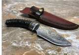 新品。 野生黑山羊角大马士革钢。出货了经厉一个多月纯手工打造限量款大马士革刀,深冷热处理手工打磨精选黑山羊角手工皮套现终于出货了刀柄天然野生黑山羊角加手工铜档手些刀极巨收藏价值