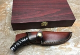 总 长 22.3cm刃 长: 11.3cm柄 长: 11.4cm刃 宽: 4.1cm(最宽处)硬 度: 59HRC刃 厚: 0.4cm柄 材: 野生黑山羊角重 量: 726克含包装刃 材: 手工锻打大马士革钢表 面: 大马士原纹+雕刻腾龙 其 他: 木盒,真皮套