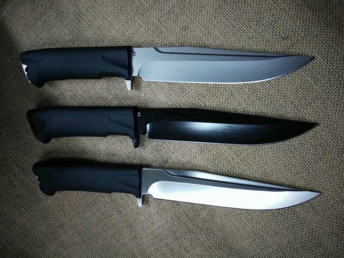 材料:A2 长度:292MM 厚度: 5.2MM 刃长:164.5MM 柄长:127.5MM 刃宽:32.5MM 护手宽:42MM 硬度:59-61(真空热处理)真空处理韧性非常好 柄材:克拉通(3D立体型面) 刀鞘:黑色植糅革(表面浮雕花纹)独具匠心,一比一还原! A2钢材韧性是SkD11的两倍, A2的韧性在冷作模具钢中较为突出, 因此,用A2制造的很少出现裂纹和崩裂, 大大