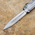 Microtech微技术121直跳刀透视款, 3.5英寸Tanto锋刃,盖子用透明树脂纤维雕刻而成,里面的弹锁机构一目了然! 非常个性