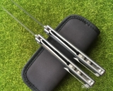 有两种刀柄选择:钛合金/碳纤维。 内衬片都是钛合金,颜色和刀片表面处理是一致的。