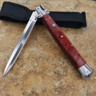 AKC款13英寸意大利黑手党使用的经典刀具-赌徒跳刀,13英寸(33CM)特长款,粉红色亚克力柄的黑手党侧跳,出刀迅速,锁定稳固,具有超强的穿刺力!带有保险装置,刀护手处暗藏闭合开关,别具把玩性,功能性完工度不错,满足把玩和收藏的需要规格