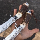 制作时间非常漫长、款式设计合理出色、双S型护手凌角设计,高贵霸气、搭配精挑完美鹿角、尾部皇冠帽,刀刃钢材:进口大马士革钢(硬度60HRC)刀刃锋利无比、坚不可摧[悠闲]