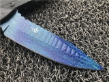 品牌:Microtech 微技术类型: 战术直刀材质:D2全长:27cm刃长:14cm刃厚:0.5cm刀重量: 300克表面:彩色镀钛硬度:60±1HRC(真空热处理)手柄:黑色G10,CNC 成型刀鞘:战术K鞘(进口Kydex板)