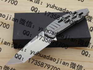 最新的拔手钉快开方式,开合更加顺畅,全钛刀柄;刀片采用D2材料,全手工打磨,线条流畅;最高要求的精准的外六角止位钉,更显工艺高超;内嵚式合金锁位片,使刀柄表面光滑,给人最美观感!