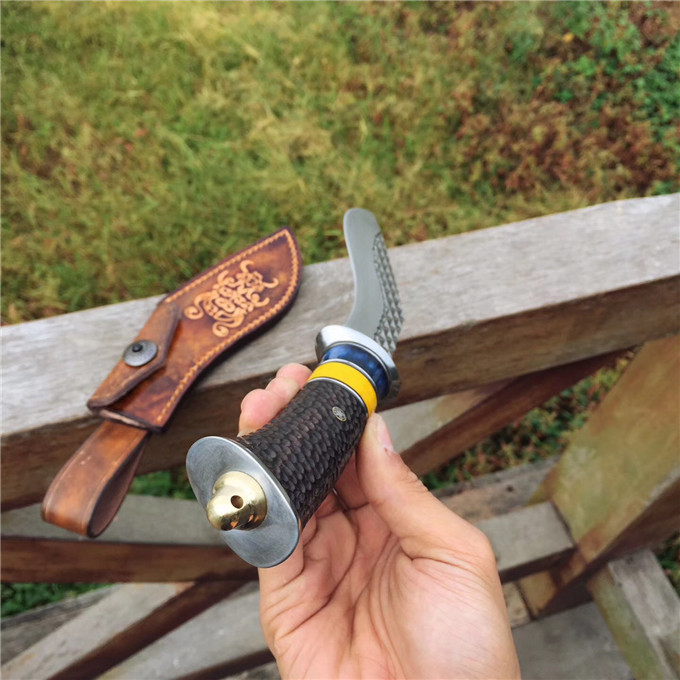 手柄做工/黑檀木微粒雕刻仿滑、仿裂、是把值得拥有好刀、野外工作利器首选、【高端手工制作牛皮刀套】