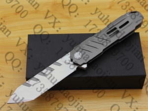 最新的拔手钉快开方式,开合更加顺畅,全钛刀柄,;刀片采用D2材料,全手工打磨,线条流畅;最高要求的精准的外六角止位钉,更显工艺高超;内嵚式合金锁位片,使刀柄表面光滑,给人最美观感!这就是全新的
