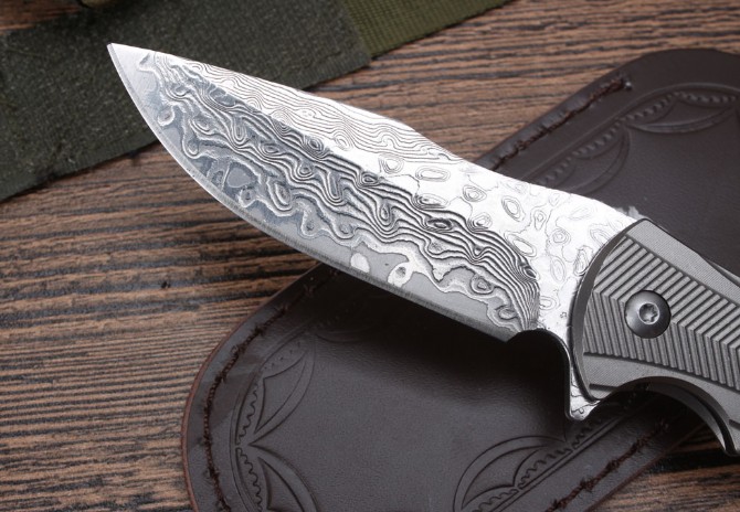 ZT0192钛柄快开折刀(大马士革)