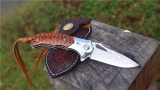 2018最新作品即将上市【箭鲨-玲珑师作品】刃材夹钢祥云纹轴承滚珠快开结构、(钢铁之躯钢头)蛇纹木手柄一木一刀斑点覆盖猎豹纹、佩高端定制版复古经典牛皮刀套,好东西不错过!