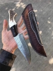 轻松过厚料矿泉水瓶子,锋利度超好!高端袭击-雪狼大马士革一体龙骨老鹿角柄、限量发售!搭配法兰斯进口优质植鞣雕花皮,纯手工镶嵌、雕刻、缝线!是高贵象征!收藏级玩家必备玩具!好货数量有限,只做限量版!机会不要错过!!!总长:25.2cm,刃长:12.5cm,刃厚:4.5MM,刃宽:4cm,重量:286g,钢材:日本夹层大马士革钢,钢芯层VG10钢67层锻造!硬度:60HRC,真空热处理,锋利度非常好、一体龙骨设计!皮套:法兰斯进口优质手工雕花植鞣皮,纯手工缝线镶嵌鸵鸟脚皮!包装:硬手工盒子!