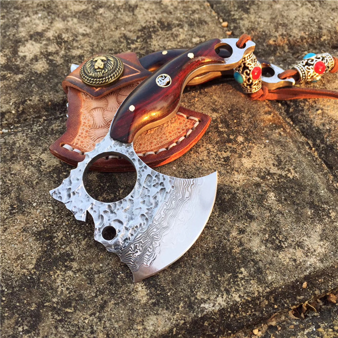 刃口二次开刃锋利可及[色],收藏玩把精品,大小适中随身携带、【佩手工植鞣雕花雄狮牛皮刀套】