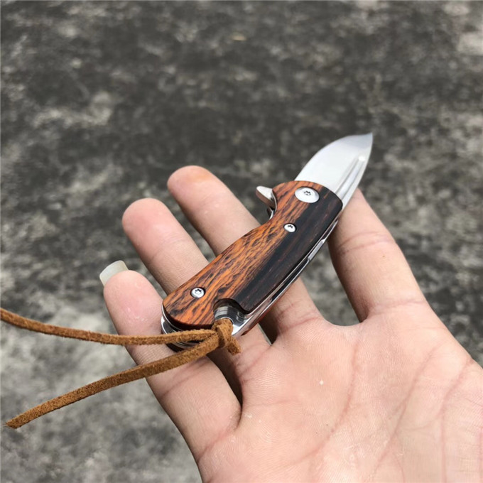 滚珠快开折刀、手柄材质:微粒黄檀木,折合长:8cm