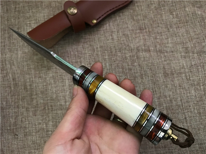柄 材: 牛骨+彩石+钢头,纯手工工艺